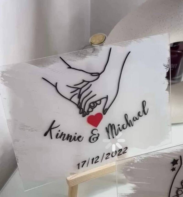 Merci d'indiquer la couleur du fond de plaque, les prénoms et la date de mariage.